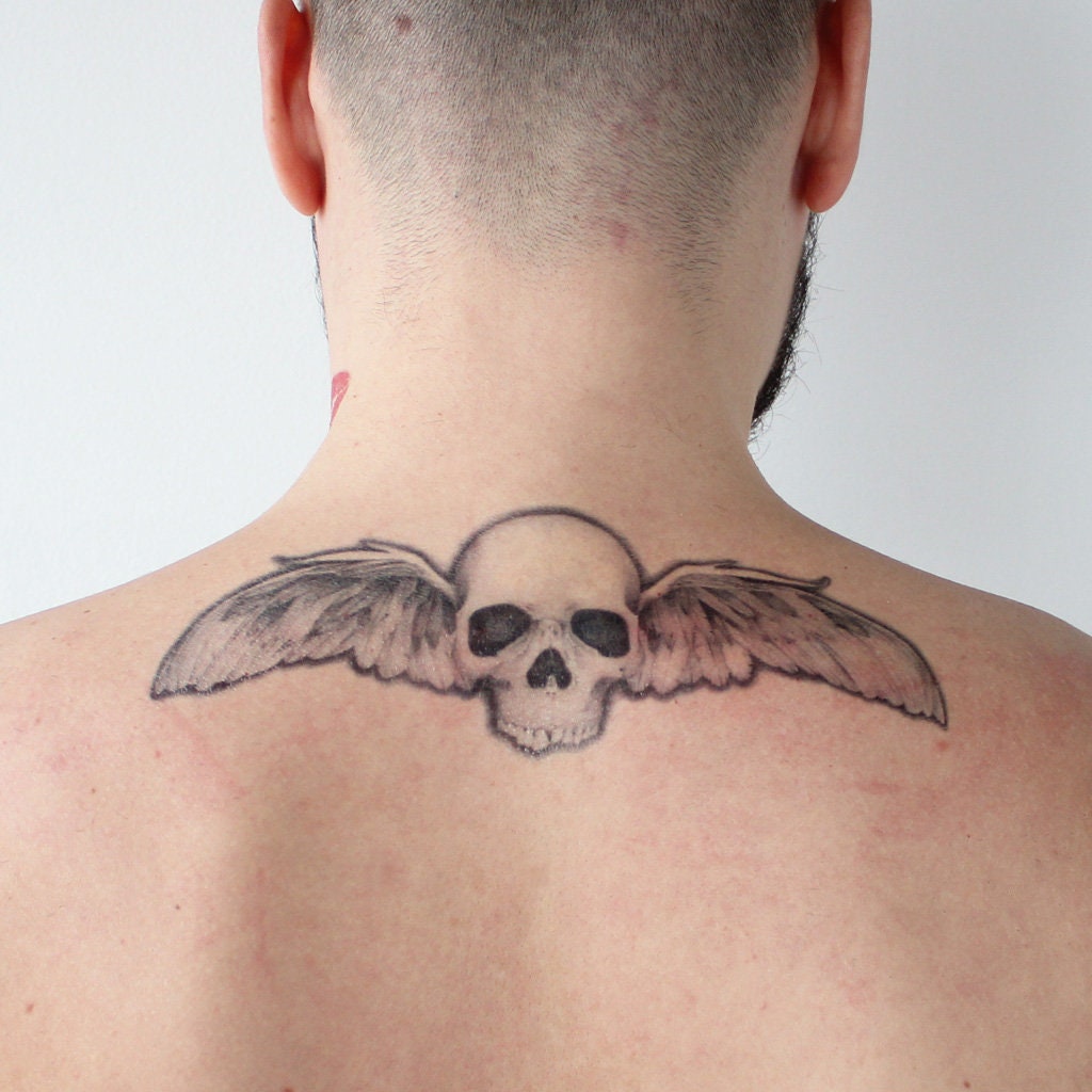 Winged Skull Temporary Tattoo Skull Tattoo Fake Tattoo Etsy Australia