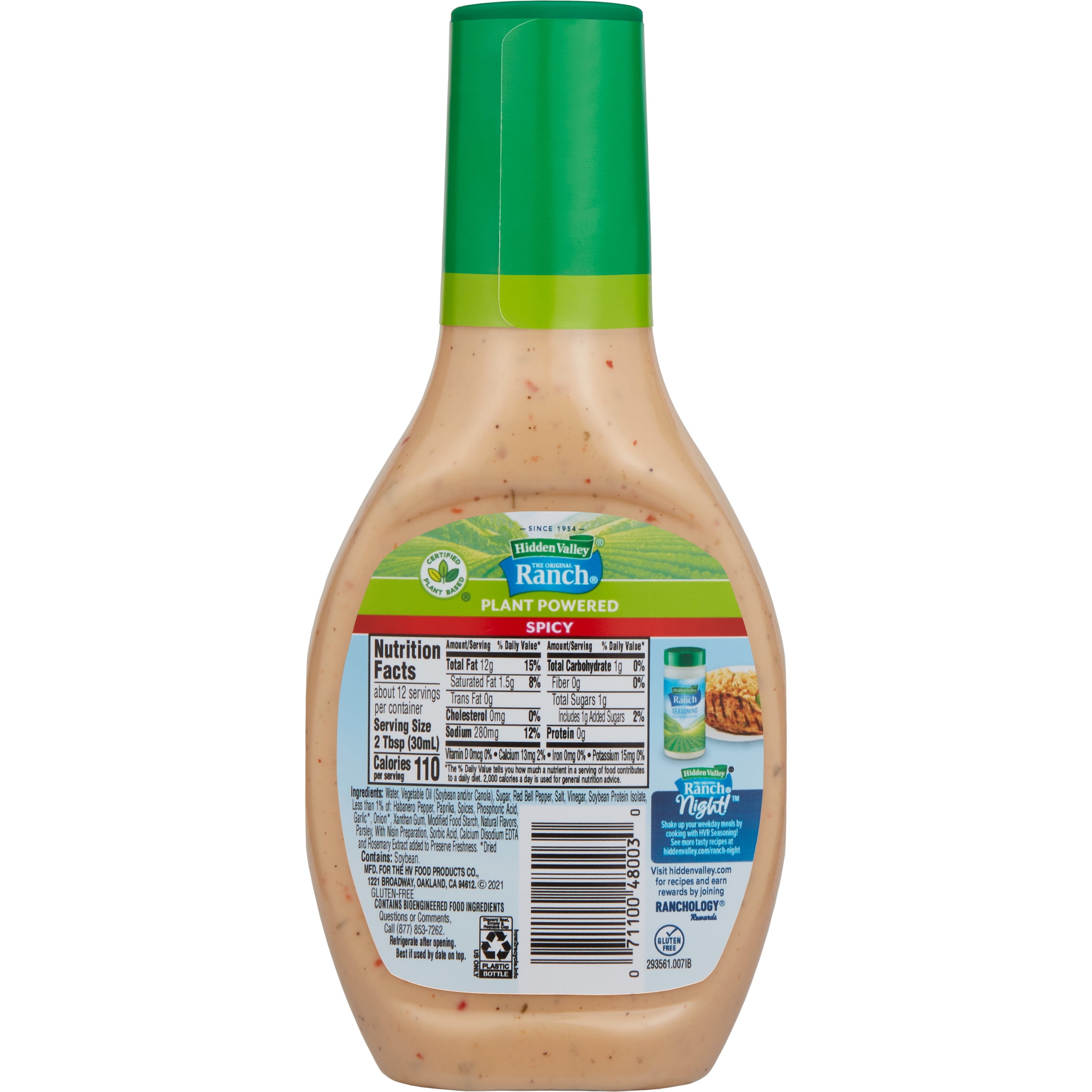 Hidden Valley Vegan Gluten Free Spicy Original Plant Powered Ranch Dressing And Topping 12 Fl Oz Walmart Com